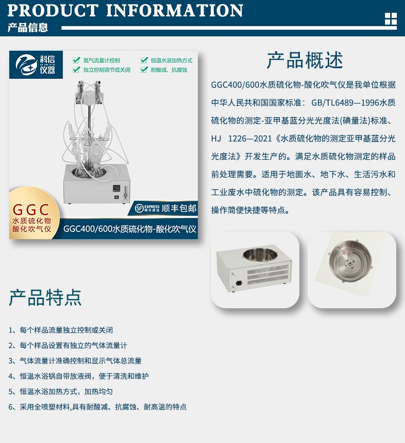 产品名称:GGC400/600水质硫化物-酸化吹气仪