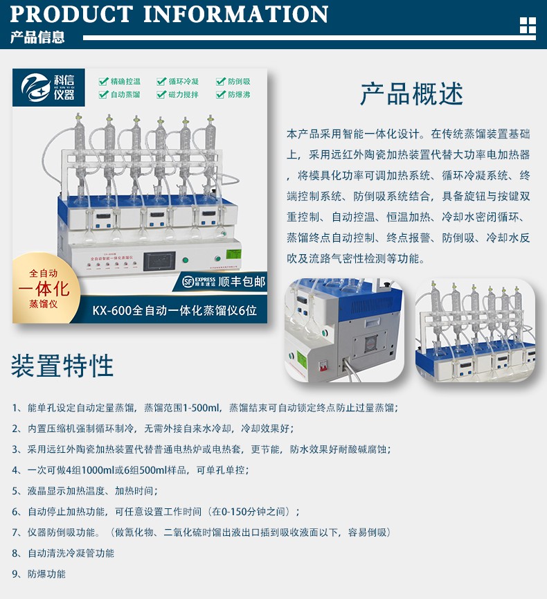 产品名称:KX-600全自动一体化蒸馏仪6位