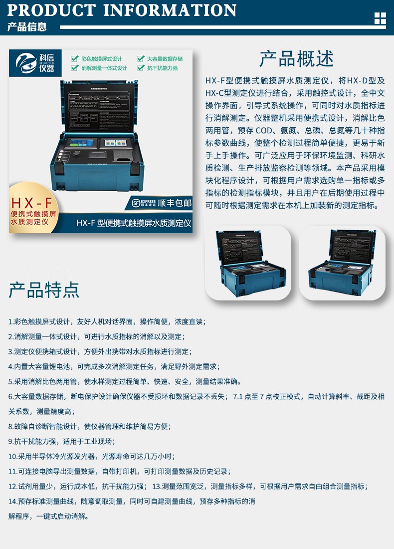 产品名称:HX-F系列便携式触摸屏水质测定仪